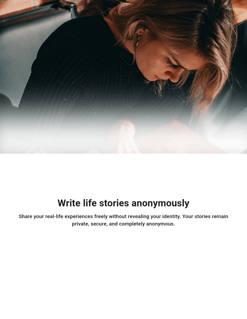 We allow you to feel free when telling your life altering stories and give you the option to read stories of others as well.